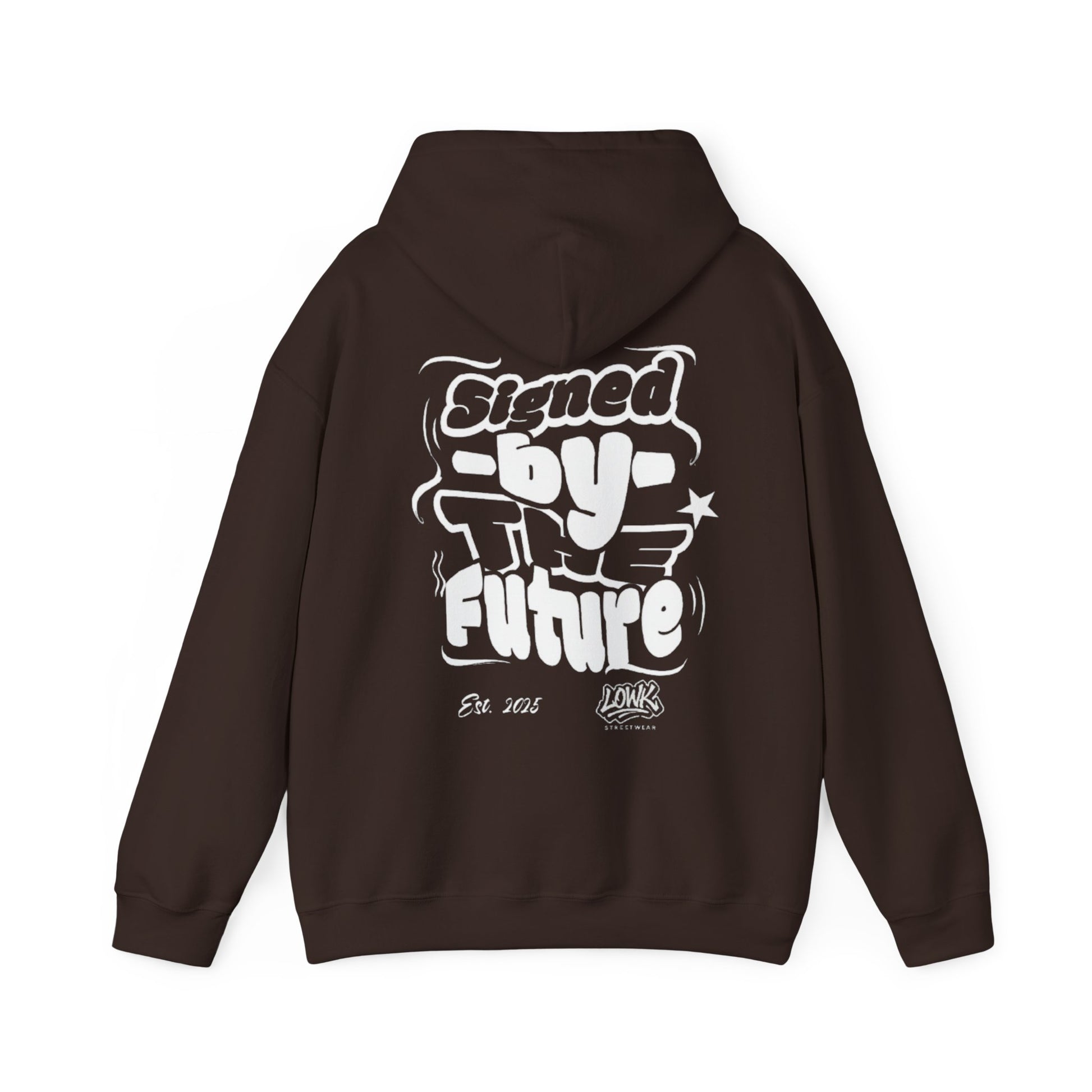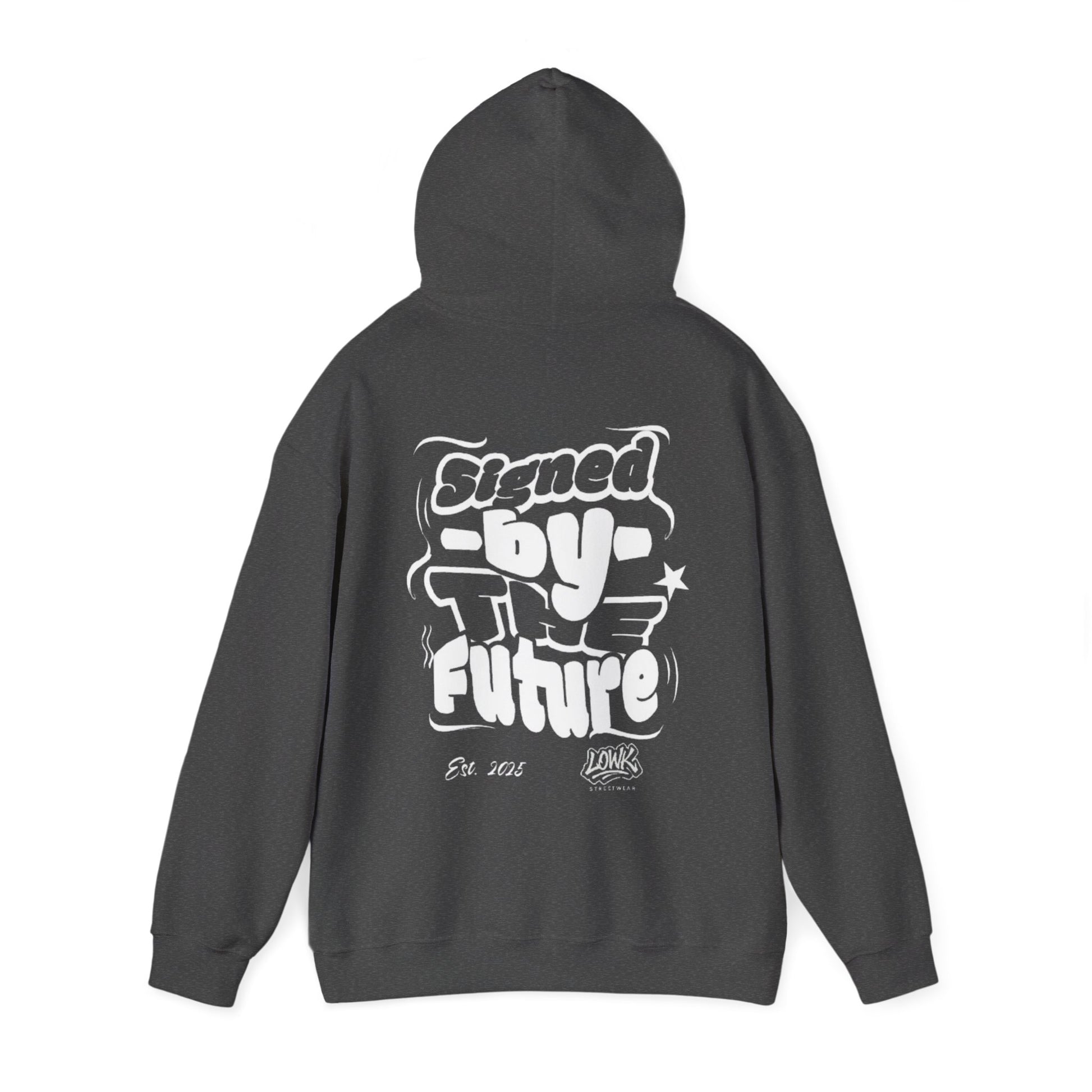Stamped with "Signed by the Future" across the back, this streetwear style hoodie speaks for the ones writing their own destiny. Built for the bold, the hungry, the ones who move in silence but leave a legacy loud enough to echo. Oversized fit, clean lines, raw energy.